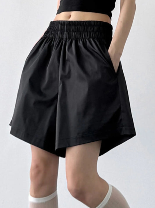 Color Blocked Scalloped Hem Shorts + Plus Size