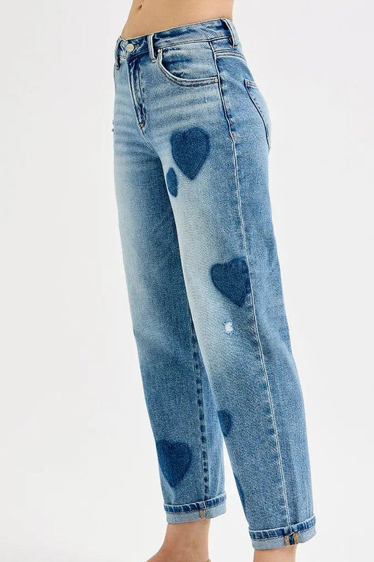 Mid Rise Fit-boyfriend Heart Shade Jeans + Plus Size