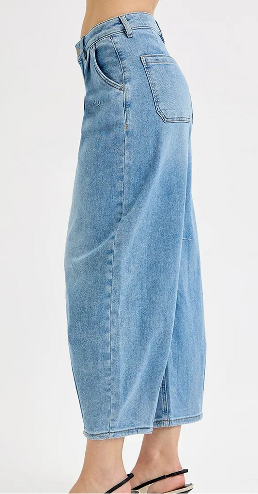 Mid Rise Fit Crop Wide Volume Leg Jeans + Plus Size