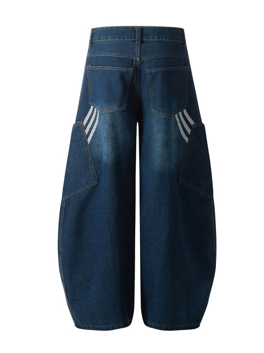 Boyfriend Striped Wide Leg Balloon Jeans