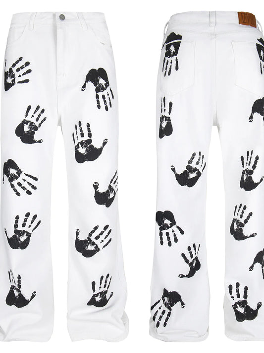 Handprint Pattern Boyfriend Jeans