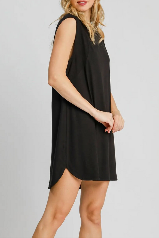 Round Neck Sleeveless High-Low Curved Hemline Mini Dress