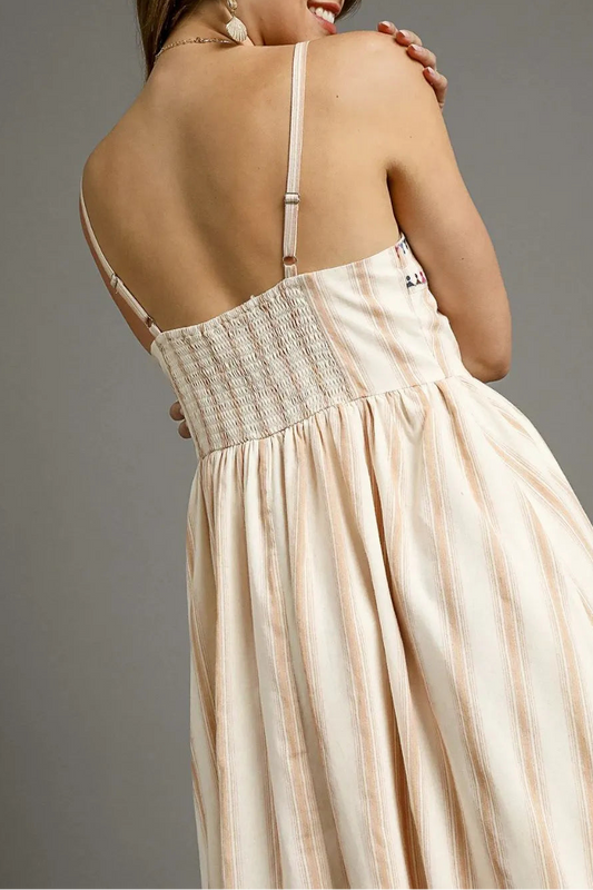 Striped Colorful Embroidered Trim Cami Dress
