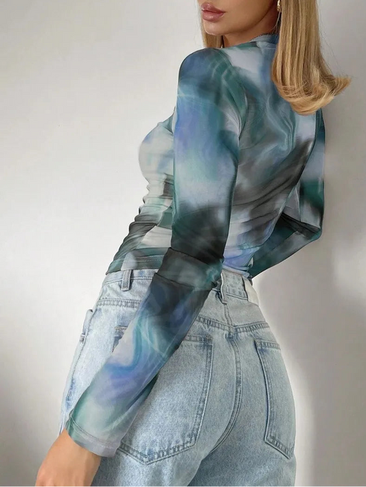 Tie-Dye Round Neck Long Sleeve T-Shirt
