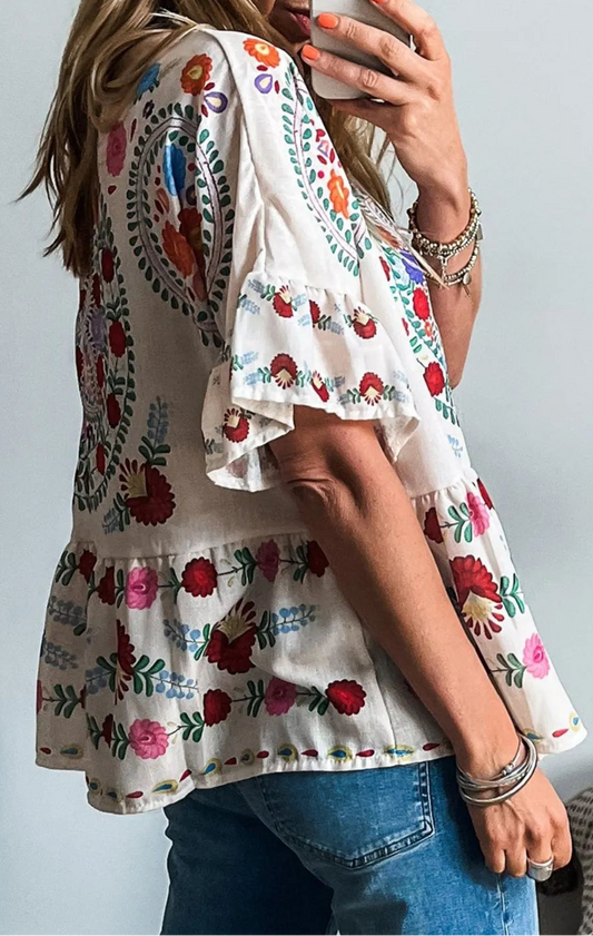 Ruffled Off-Shoulder Flounce Sleeve Blouse