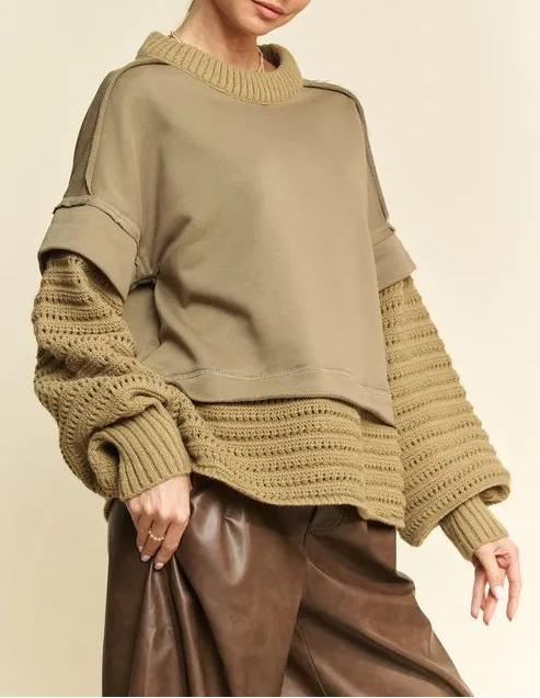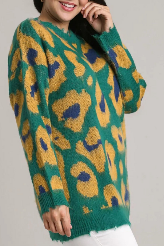 Leopard Destroyed Rib Band Sweater + Plus Size