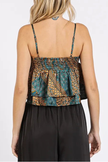 Paisley Patchwork Print Satin Ruffle Crop Cami