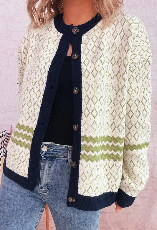 Geometric Pattern Button Up Long Sleeve Cardigan