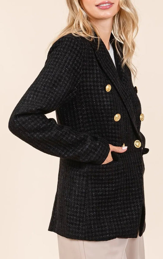 Plaid Texture Double-Breasted Long Sleeve Blazer