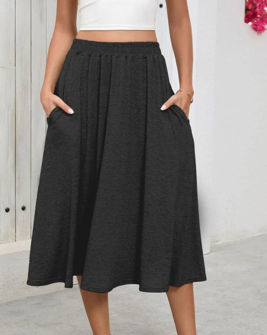 Elastic Waist Skirt with Pockets