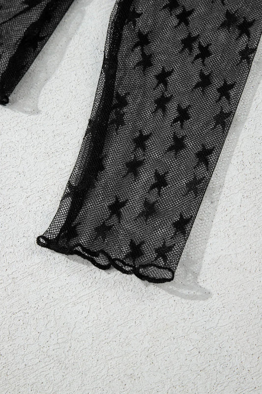 Star Round Neck Long Sleeve Sheer Blouse