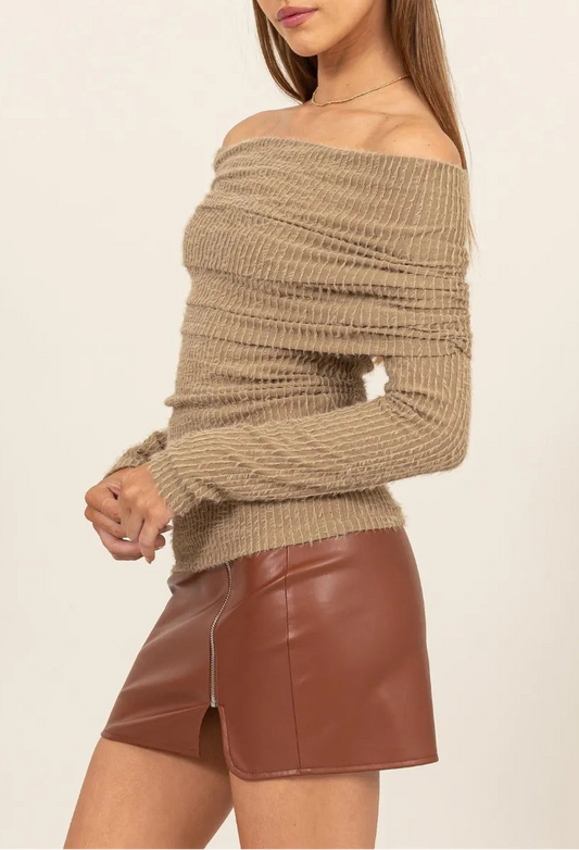 Fringe Round Neck Long Sleeve Lace Sheer Top